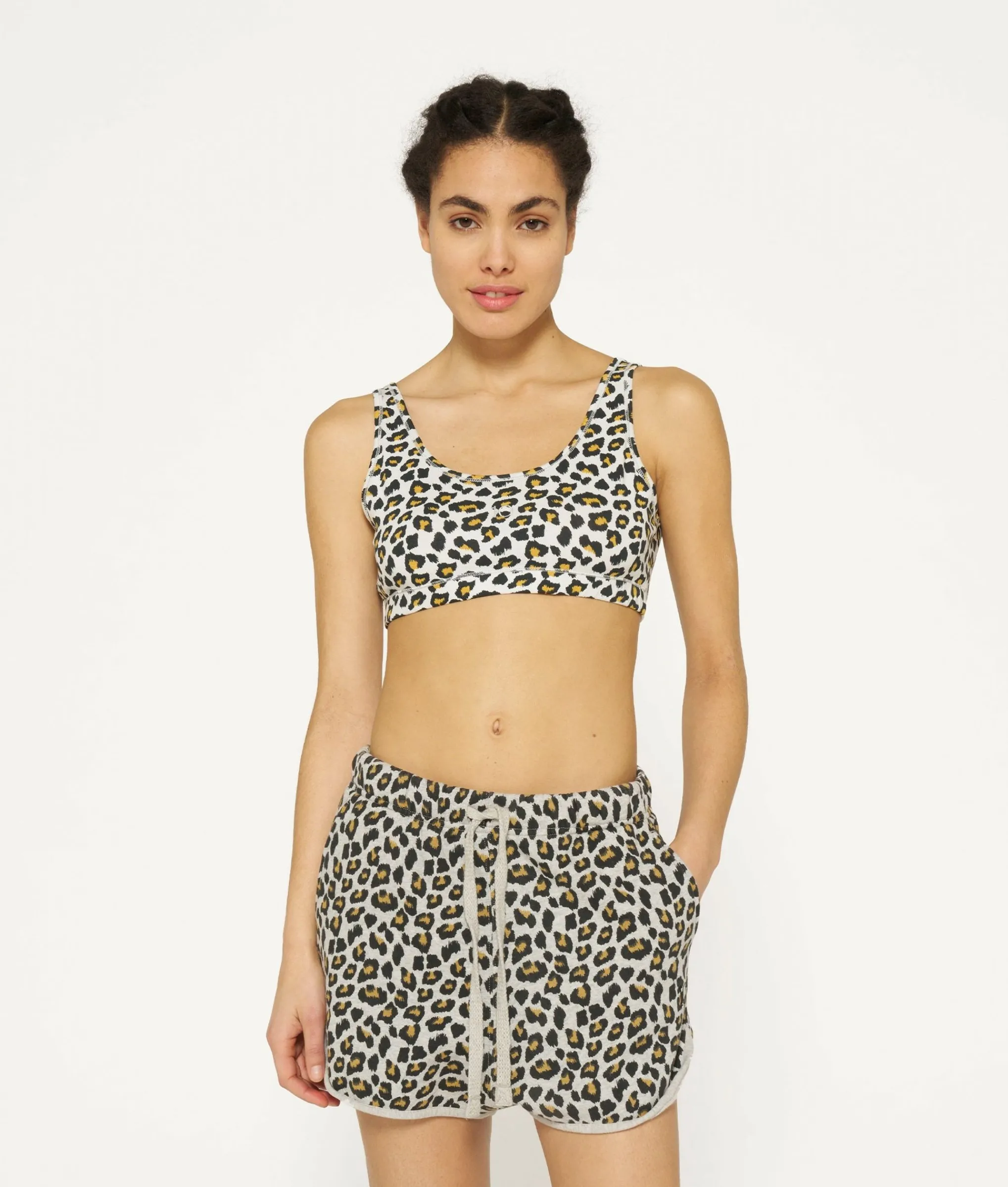 Dubbelzijdige, Sportieve Bh In Luipaardprint, Gemaakt Van Biologisch Katoenen Jersey. Aan Een Zijde Een Rechte Afwerking…