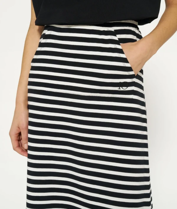 Regular Fit Lange Rok Met Streepdessin, Gemaakt Van Gots Gecertificeerd Biologisch Katoenen Jersey. Voorzien Van Een Elastische Tailleband, Een Kangoeroe Zak Met “10” Borduring Erop En Een Zijsplit Aan De Linkerzijde.