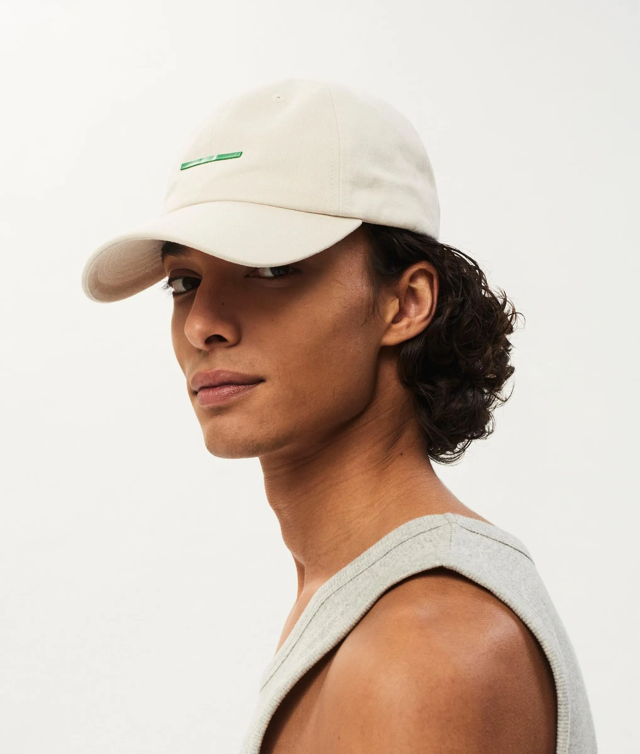 Katoenen Pet Met Horizontale Rubberprint Aan De Voorzijde. Voorzien Van Een Verstelbare Gespband En Een ‘T-D’ Borduring …